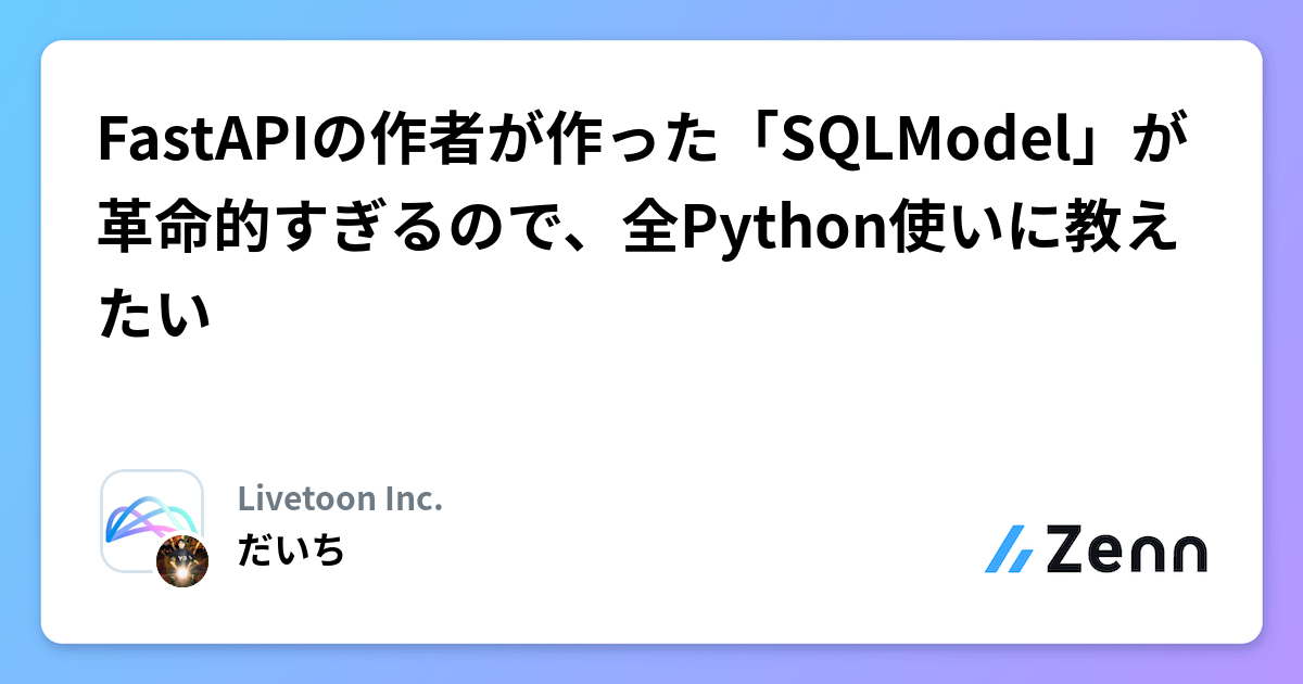 FastAPIの作者が作った「SQLModel」が革命的すぎるので、全Python使いに教えたい |